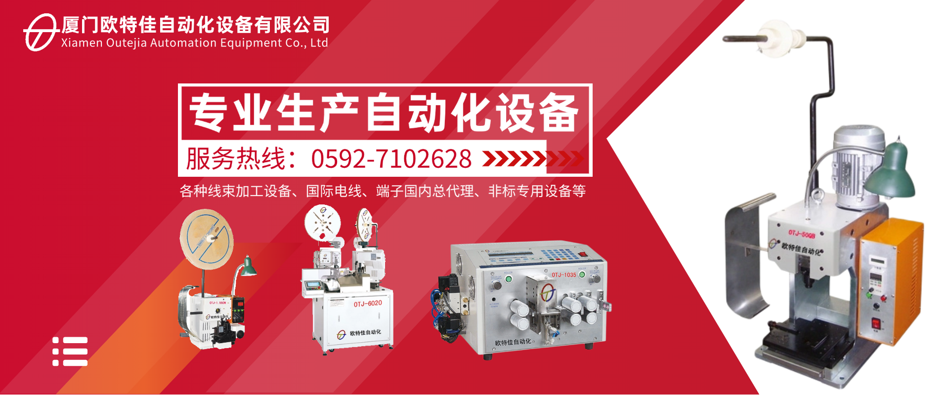 廈門(mén)歐特佳自動(dòng)化設(shè)備有限公司為廈門(mén)歐特佳工貿(mào)有限公司的全資子公司,公司位于美麗的海濱城市----福建省廈門(mén)市,是一家專(zhuān)業(yè)生產(chǎn)自動(dòng)化設(shè)備的高新企業(yè),產(chǎn)品包括:各種線(xiàn)束加工設(shè)備、國(guó)際電線(xiàn)、端子國(guó)內(nèi)總代理、非標(biāo)專(zhuān)用設(shè)備等,其中的線(xiàn)束設(shè)備是源自國(guó)有大型軍工企業(yè),企業(yè)具有很強(qiáng)的自主研發(fā)能力,現(xiàn)有源自國(guó)有大型企業(yè)并有著長(zhǎng)期致力于線(xiàn)束設(shè)備及加工工藝研究的中等技術(shù)人員10多名,公司的主要產(chǎn)品有:全自動(dòng)端子壓接機(jī)(單端、雙端、一端壓接,一端沾錫)、全自動(dòng)電腦剝線(xiàn)機(jī)、高速端子壓接機(jī)、切管機(jī)、端子壓接模具等,并承接各種切削刀片和端子刀片設(shè)計(jì)加工。