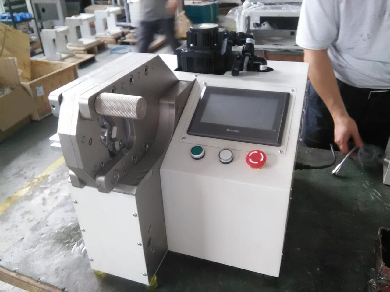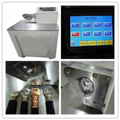This machine adopts a unique internal hexagonal automatic retraction mechanism, which is driven by an imported PLC servo motor through deceleration to drive the connecting rod slider mechanism. Through our companys unique internal hexagonal automatic retraction mechanism, it can achieve crimping of 10-120 square terminals without changing molds. You can directly input the desired crimping wire specifications on the color touch screen for automatic crimping.